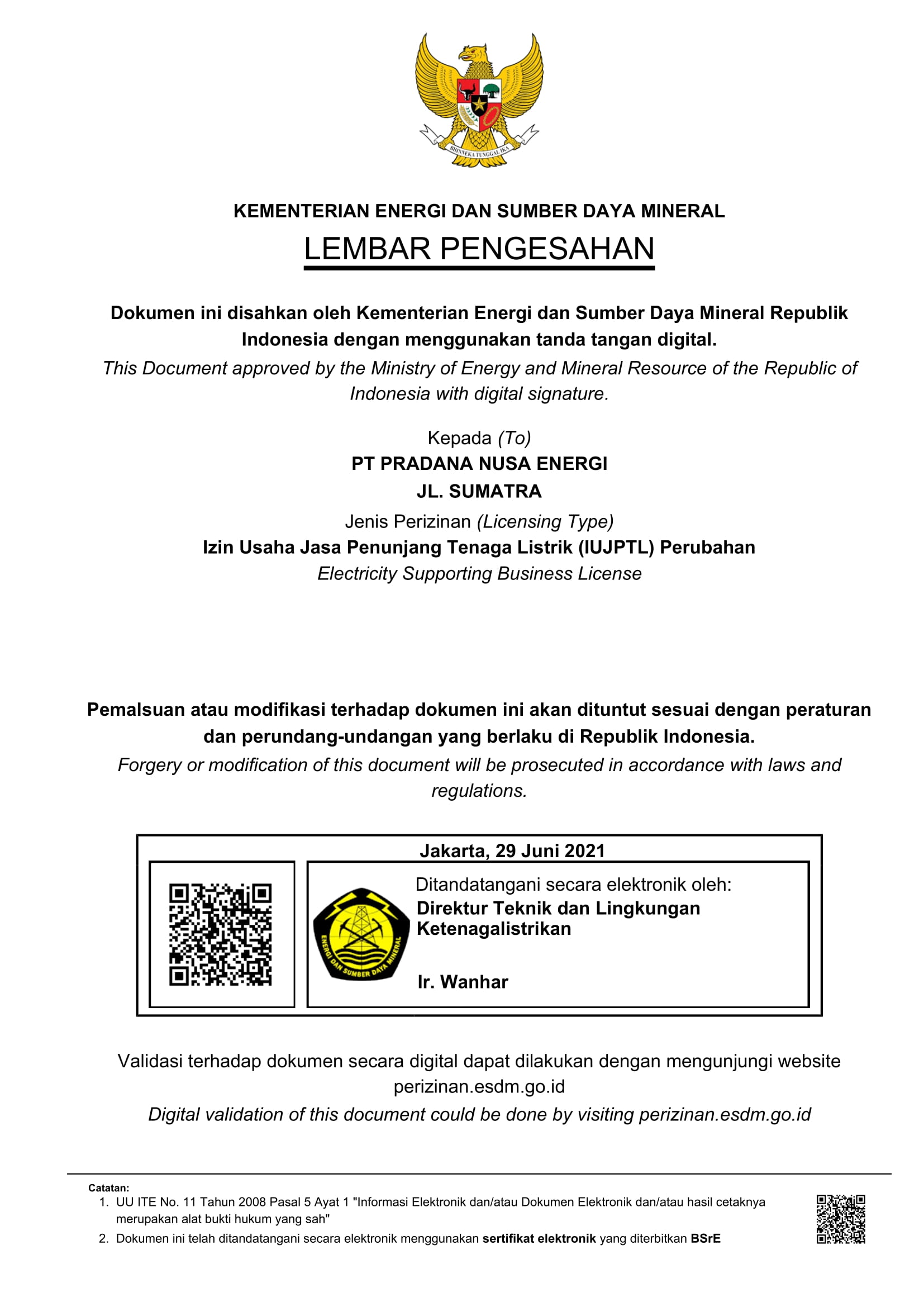 Surat Ijin Usaha Jasa Penunjang Tenaga Listrik